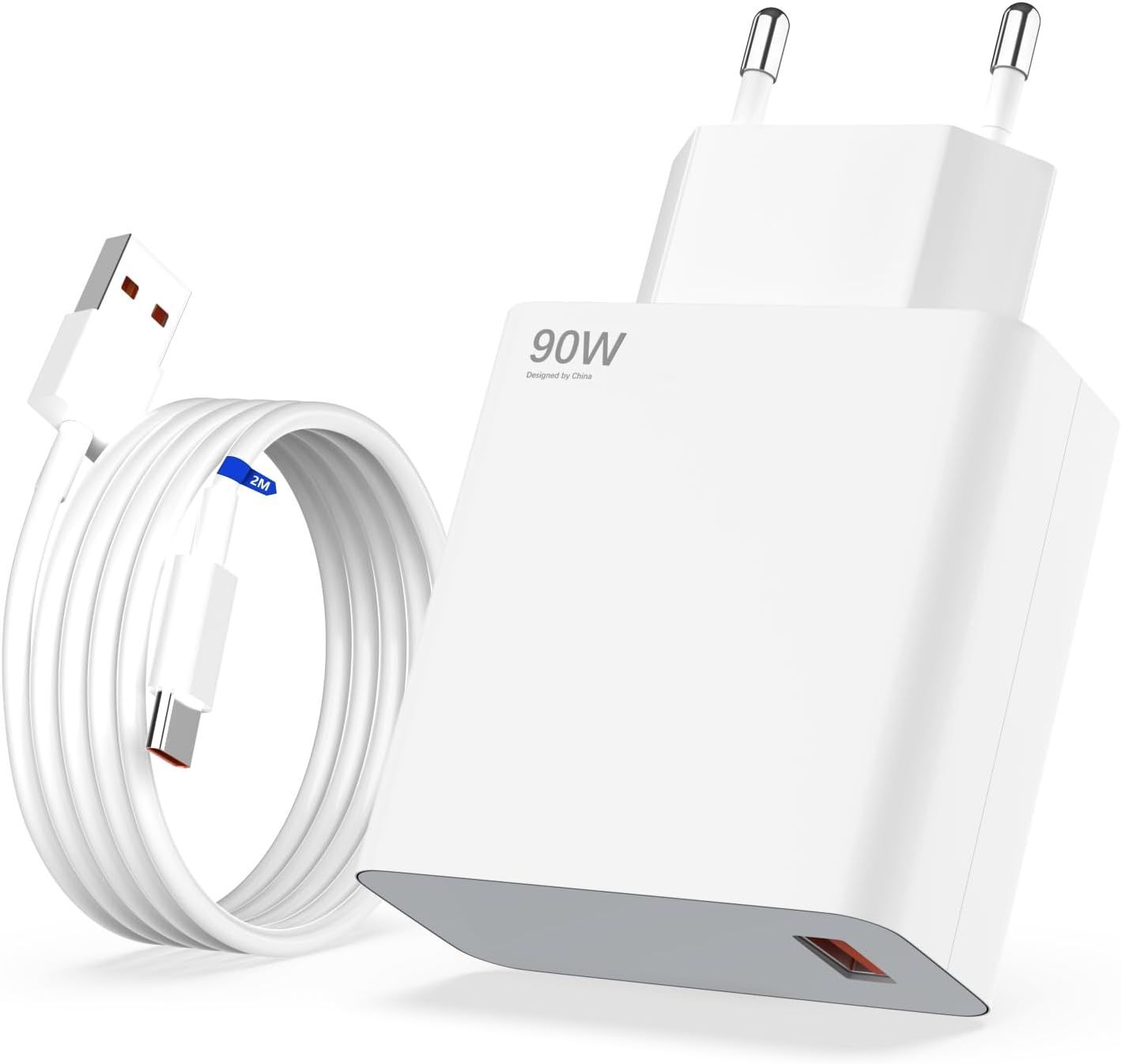 90W Chargeur Rapide Compatible avec Xiaomi 15/14/13/12S/Mi11 Ultra, 11T 13T 12S 12X 12/13 Lite, POCO F7/X7/X6/M6/F5/X5/X4 Pro, F6 F5 F4, Redmi Note 11/12T/12/13 Pro, avec USB C Câble de Charge 1.5M 6A