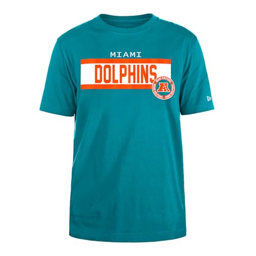 MIAMI DOLPHINS New Era Cap NFL T-Shirt régulier à Encre Haute densité sérigraphié sur Le Devant Graphique Original Couleur équipe Unisexe Turquoise