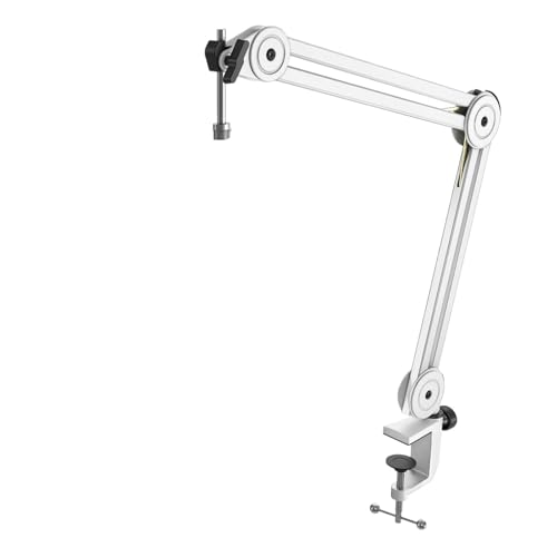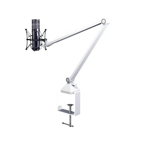 mic arm parts, Support de Microphone d'enregistrement extensible, flèche de Suspension, bras de ciseaux avec pince de montage de Table,for singing(White)