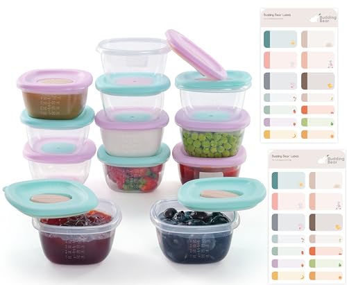 Budding Bear Pot en Verre Bebe 120 ml (Lot de 12) - Pot de Conservation Bebe avec Couvercle Hermétique Adapté au Lave-vaisselle, Congélateur & Micro-Ondes - Sans PBPA, Phthalate, Plomb & PVC