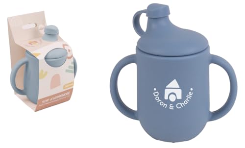 DORON & CHARLIE - Gobelet D'Apprentissage - Repas Enfant - 056741 - Bleu - Silicone - 150 ml - Compatible Micro Onde - Machine à Laver - Facile à Nettoyer - Tasse Bébé - À Partir de 4 mois