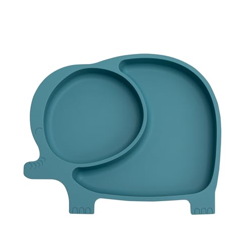 Mr. Wonderful - Assiette en silicone avec ventouse pour bébé - Eléphant bleu - Silicone 100% - compatible avec le lave-vaisselle et le micro-ondes
