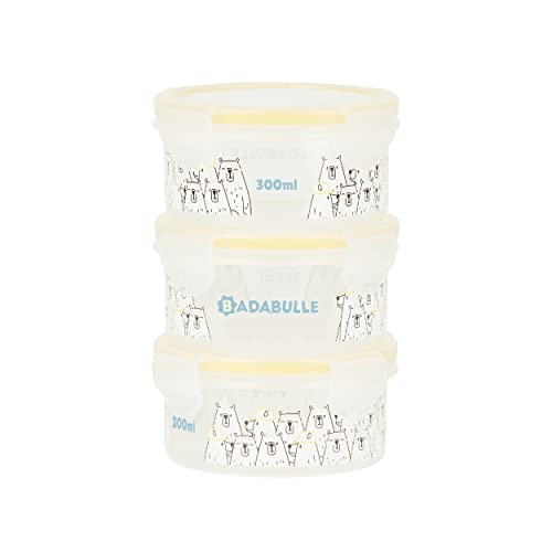 Badabulle Boîtes de Conservation Bébé Maxibox, Lot de 3x300ml, Grande Contenance, 100% Hermétiques avec Joint en Silicone, Passent au Micro-Ondes & au Lave-Vaisselle, Ours
