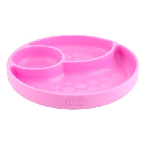 Chicco Assiette Ventouse Compartimentée en Silicone pour Bébé, Vaisselle Souple et Résistante, Compatible avec Lave-Vaisselle et Micro-Ondes - dès 12 Mois, Rose