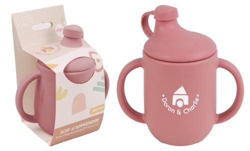 DORON & CHARLIE - Tasse À Gouter Avec Couvercle - Repas Enfant - 056730 - Rose - Silicone - 150 ml - Compatible Micro Onde - Machine à Laver - Facile à Nettoyer - Tasse Bébé - À Partir de 4 mois