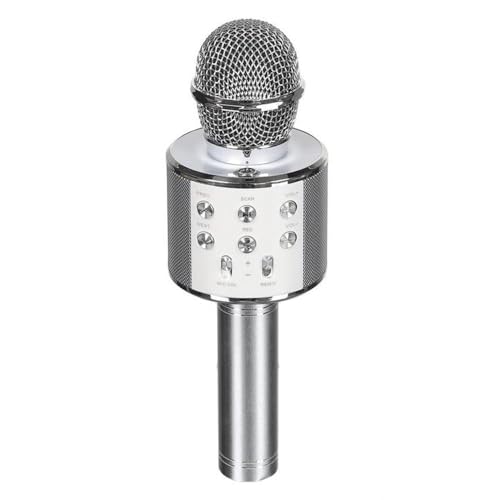 Be Mix - HT2039 Enceinte Micro Karaoke Bluetooth 3W - Autonomie 4h - Prise Jack 3.5mm - Effets Sonores - Universelle pour Smartphone/TV/Tablette - Argenté 8 x 8 x 23,5 cm