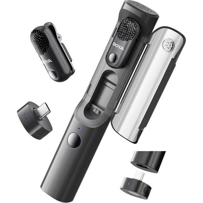 BOYA BOYAMINI micro cravate sans fil, avec Port USB-C/Lightning, Mini Microphone sans Fil iPhone/Android/Smartphone/Laptop/PC, pour Podcast Live Stream Tiktok Facebook vidéo vlog (2TX+2RX)