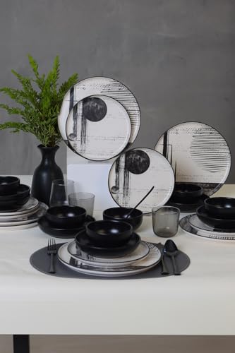 Ensemble de dîner élégant de 12 pièces, 100% porcelaine. Comprend 4 assiettes de service (24 cm), 4 assiettes (20 cm), 4 bols (15 cm) | Passe au lave-vaisselle et au micro-ondes