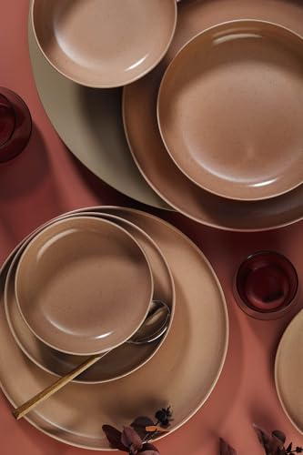 Élégant ensemble de 20 dîners en céramique, 100% grès, avec assiettes, bols, tasses à thé et sauces, passe au lave-vaisselle et au micro-ondes, parfait pour toutes les occasions