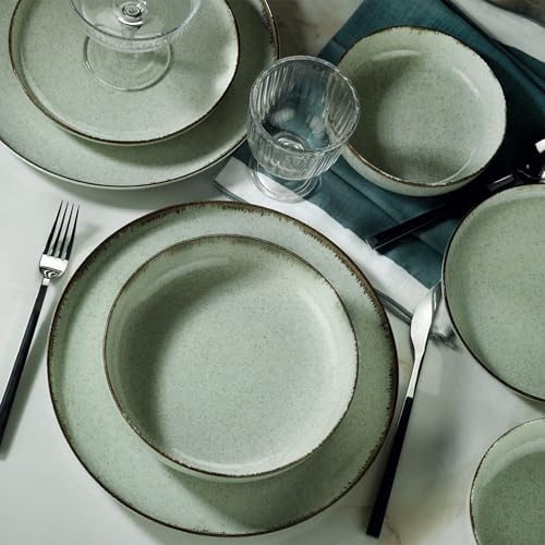 Service de dîner de 27 pièces, 100% porcelaine, vert, marron et blanc | Comprend des assiettes de service, des bols et des assiettes à dessert | Passe au lave-vaisselle et au micro-ondes | Elegant