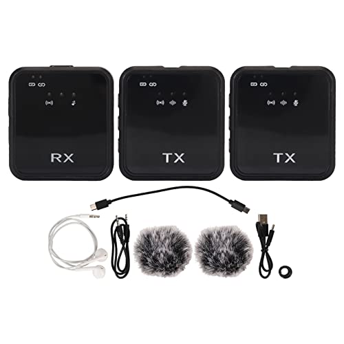 Fockety Mini Microphone sans Fil, Lot de 2 Microphones Cravate Bluetooth 2,4 G avec réduction du Bruit, Plug & Play, Micro Revers pour Enregistrement vidéo, Vlog, Podcast