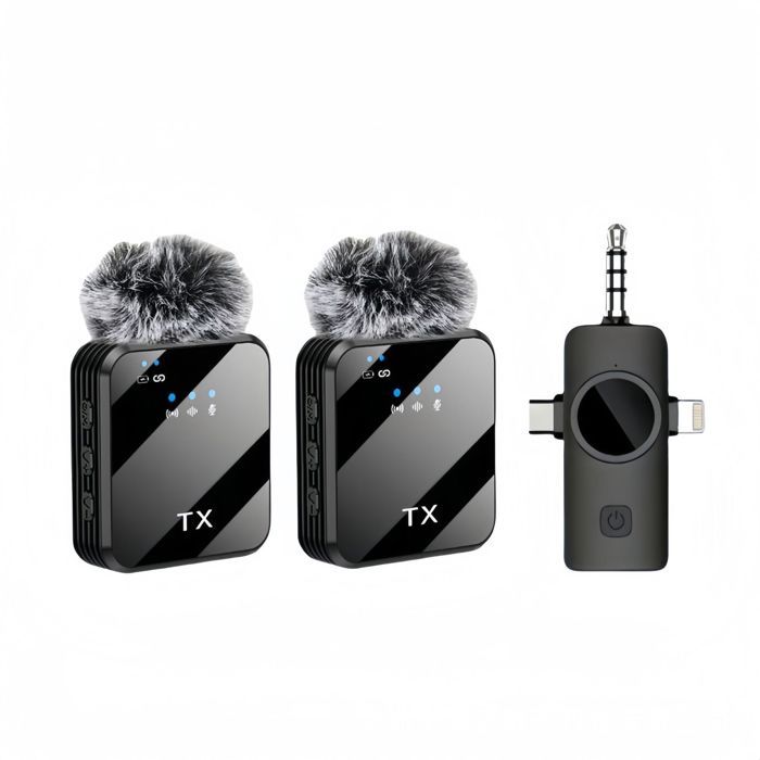 Micro cravate sans fil 2MIC MOURSIIENY — 20 m autonomie 10 h Bluetooth Lightning & USB‑C pour iPhone/iPad podcast/vlog