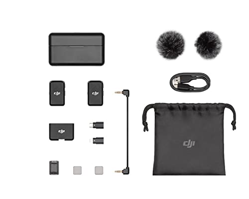 DJI Micro (2 TX + 1 RX + étui de charge), microphone cravate sans fil, portée de 250 m, batterie de 15 heures, microphone sans fil avec suppression du bruit pour PC, iPhone, enregistrement d'interview, YouTube, Vlogs
