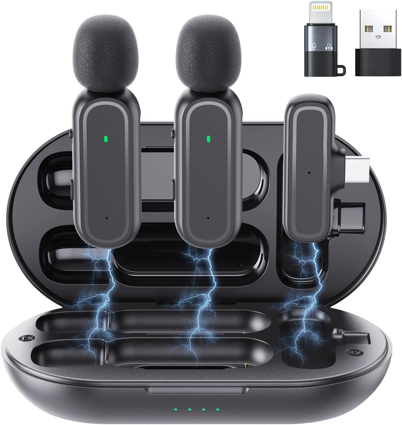 Micro Cravate Sans Fil Pour Iphone Et Ipad Avec Étui De Chargement Et Récepteur Lightning, Lot De 2 Mini Micros À Clip Antibruit Pour Enregistrement Vidéo, Tiktok, Youtube, Podcasts