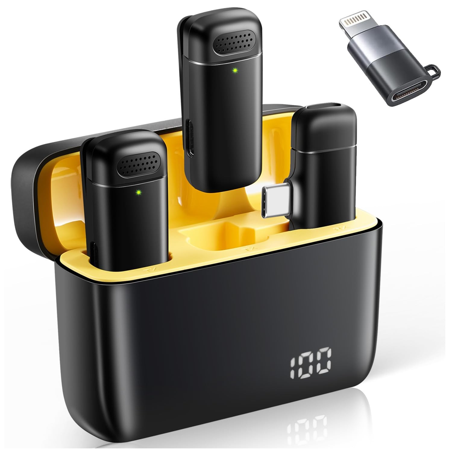 XIAOLO Micro cravate sans fil pour iphone Téléphones,microphone à pince à réduction de bruit pour un enregistrement audio clair pour les vlogs,interviews (IOS Port, yellow)