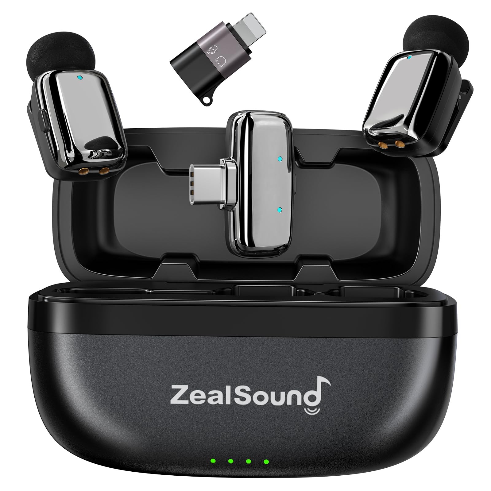 zealsound Micro Cravate sans Fil pour iPhone Android iPad PC (avec USB-C/Lightning + Étui De Charge),Réduction De Bruit/Autonomie 33H, Double Microphone sans Fil pour TikTok, Podcast, Vidéos Youtube