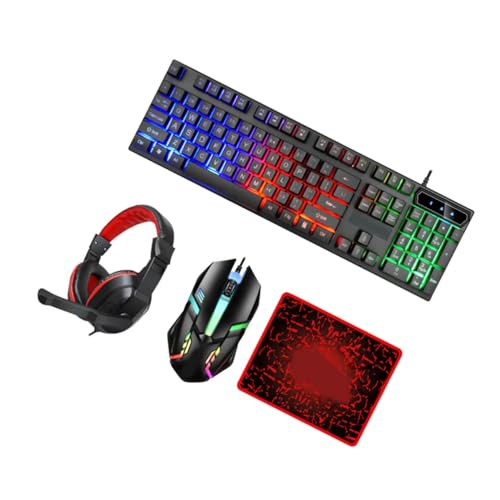 TOYZFRIENDY Ensemble Clavier et Souris Filaire Rétroéclairé pour Pc, Casque de Jeu Micro, Tapis de Souris Gamer, Compact et Confortable, Usage Bureau et Gaming, Noir