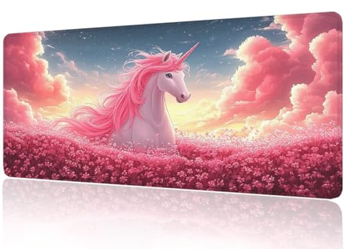 Tapis de Souris 800x400 Rose, Tapis Souris XXL Gaming Licorne - Base Anti-Dérapante en Caoutchouc, Surface Micro-Tissée pour Précision, Silencieux, Lavable sous Main pour Gamer et Télétravail M1-849