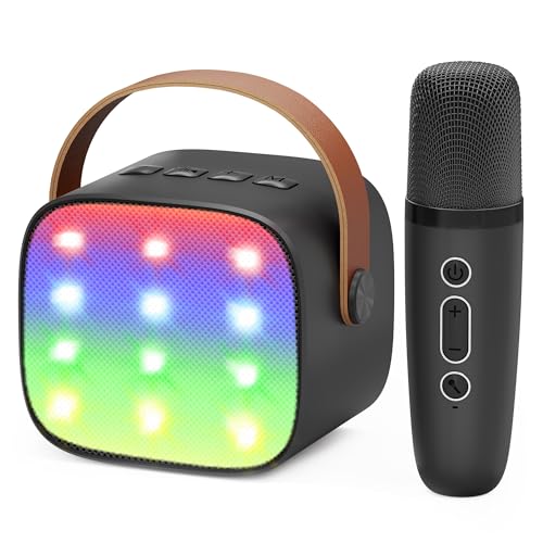 Ankuka Micro Karaoke Enfant sans Fil avec 1 Micro, Portable Karaoké Bluetooth avec Magique Voix Change et LED Lumière Qualité Sonore HiFi Mini Microphone Karaoké Complet pour Enfant Adulte Fille Noir