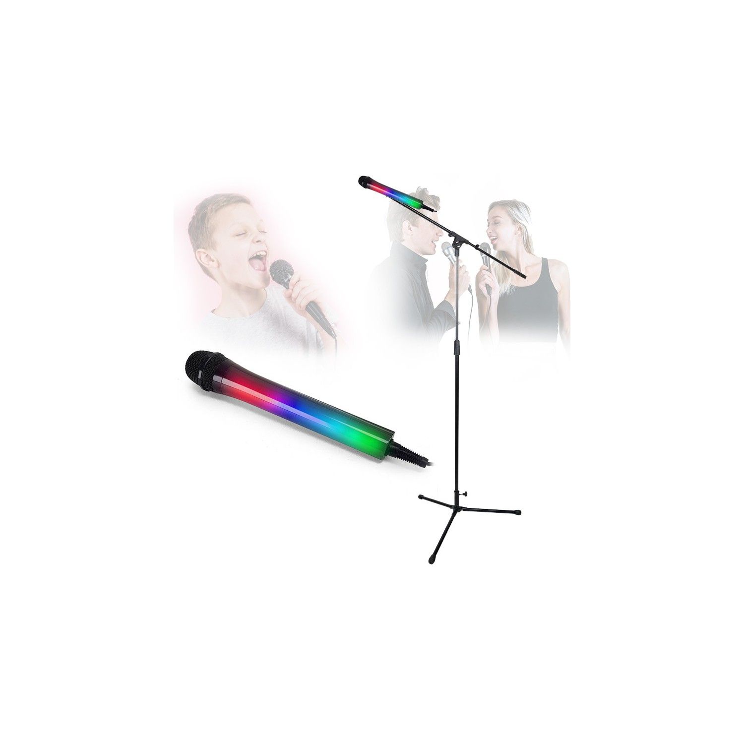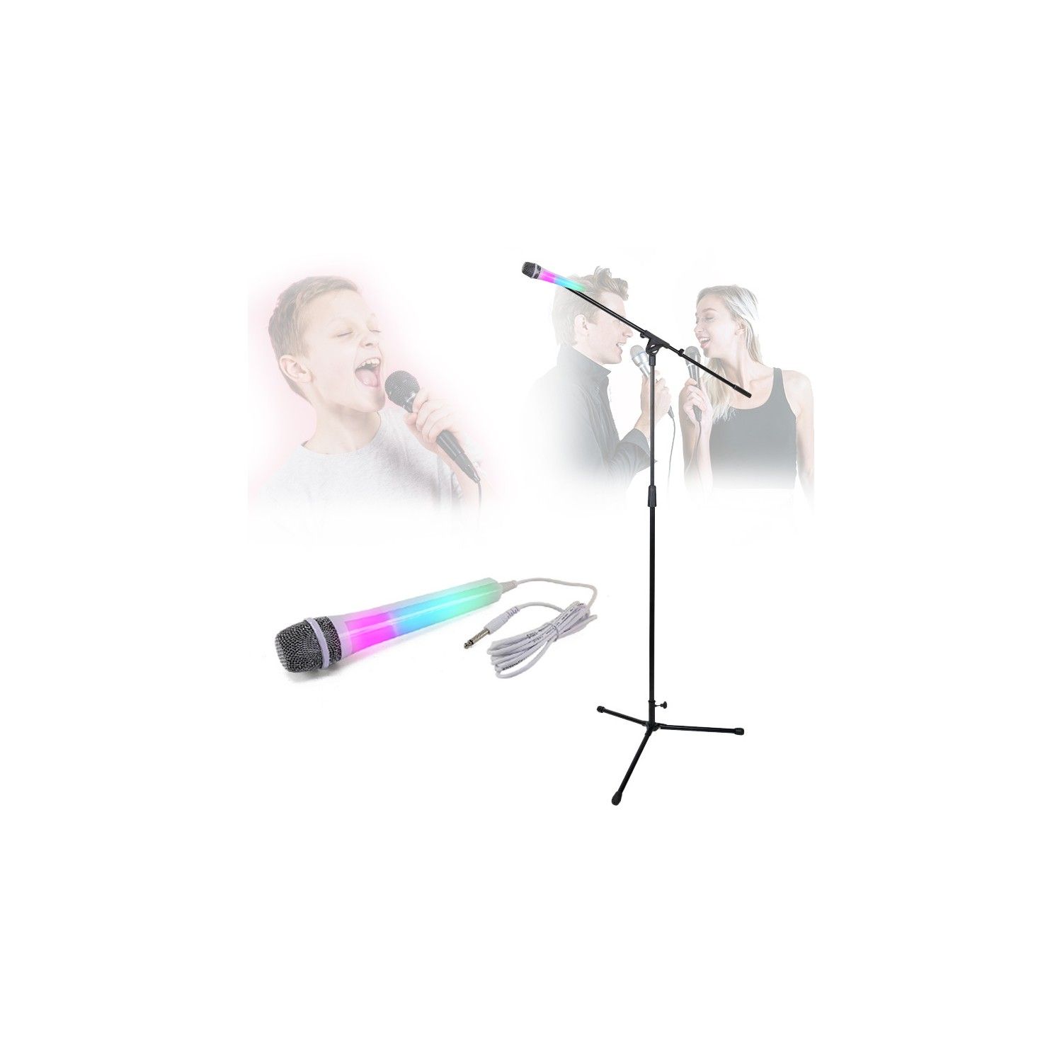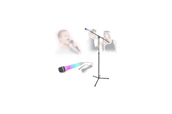 Pied de microphone en acier à hauteur réglable pour Chant Karaoké avec Micro Noir Effet lumineux Disco