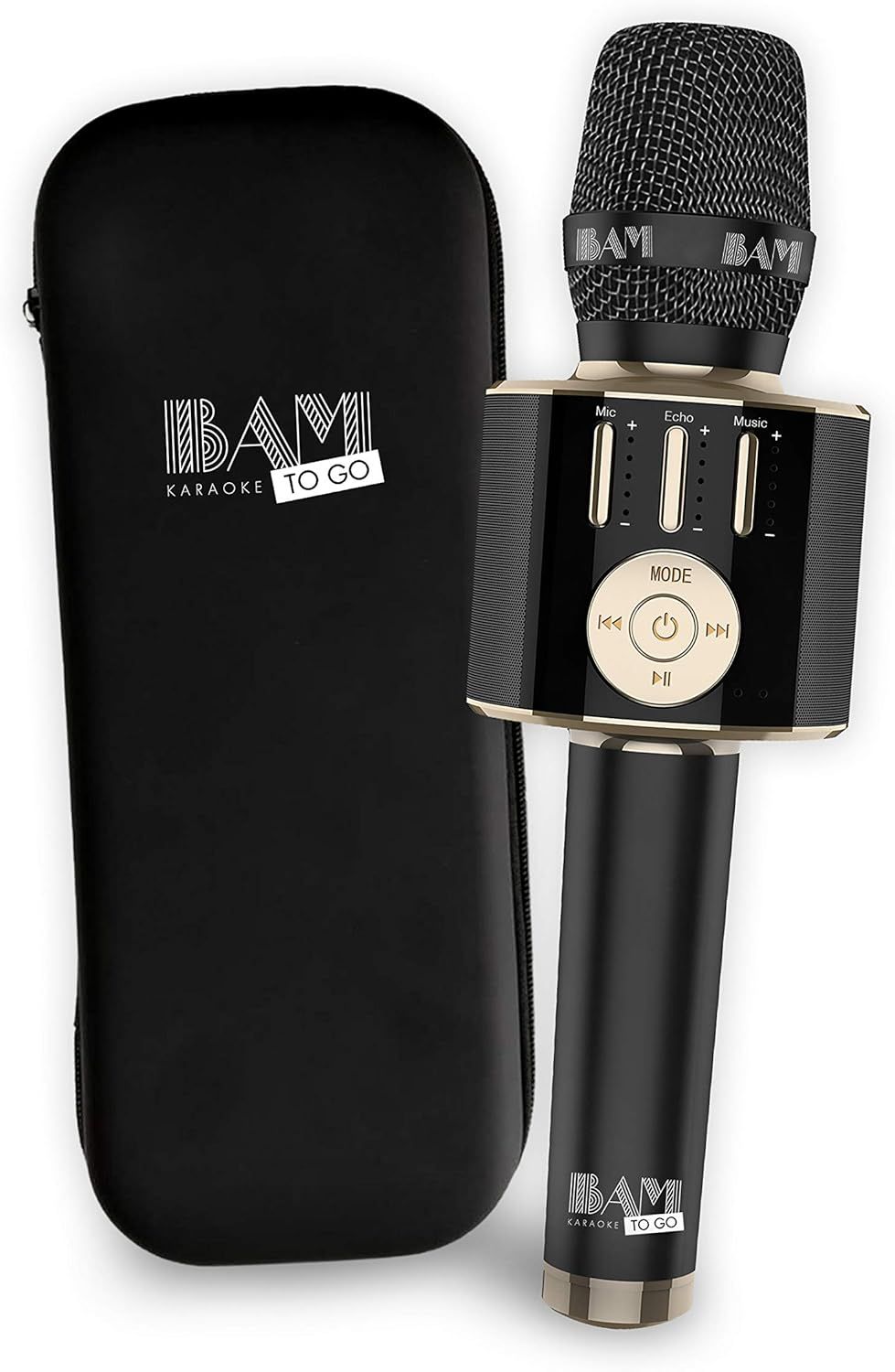 BAM KARAOKE TO GO : Le Micro Karaoké - Micro Haute-Définition Sans-Fil, Enceinte intégrée 8W, Connexion Bluetooth, 5 Effets de Voix - Noir