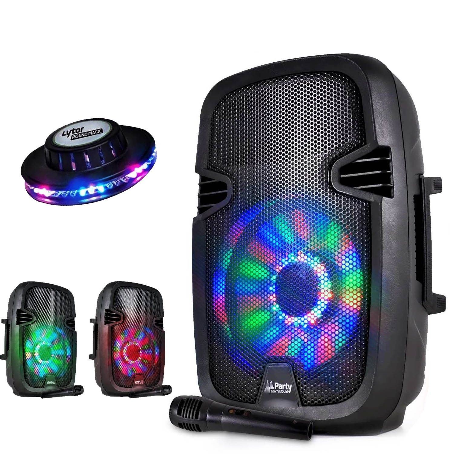 Enceinte Karaoké PARTY-8LED sur batterie 8" à LEDs RVB 300W - USB/BT/FM + Micro + Effet OVNI LED