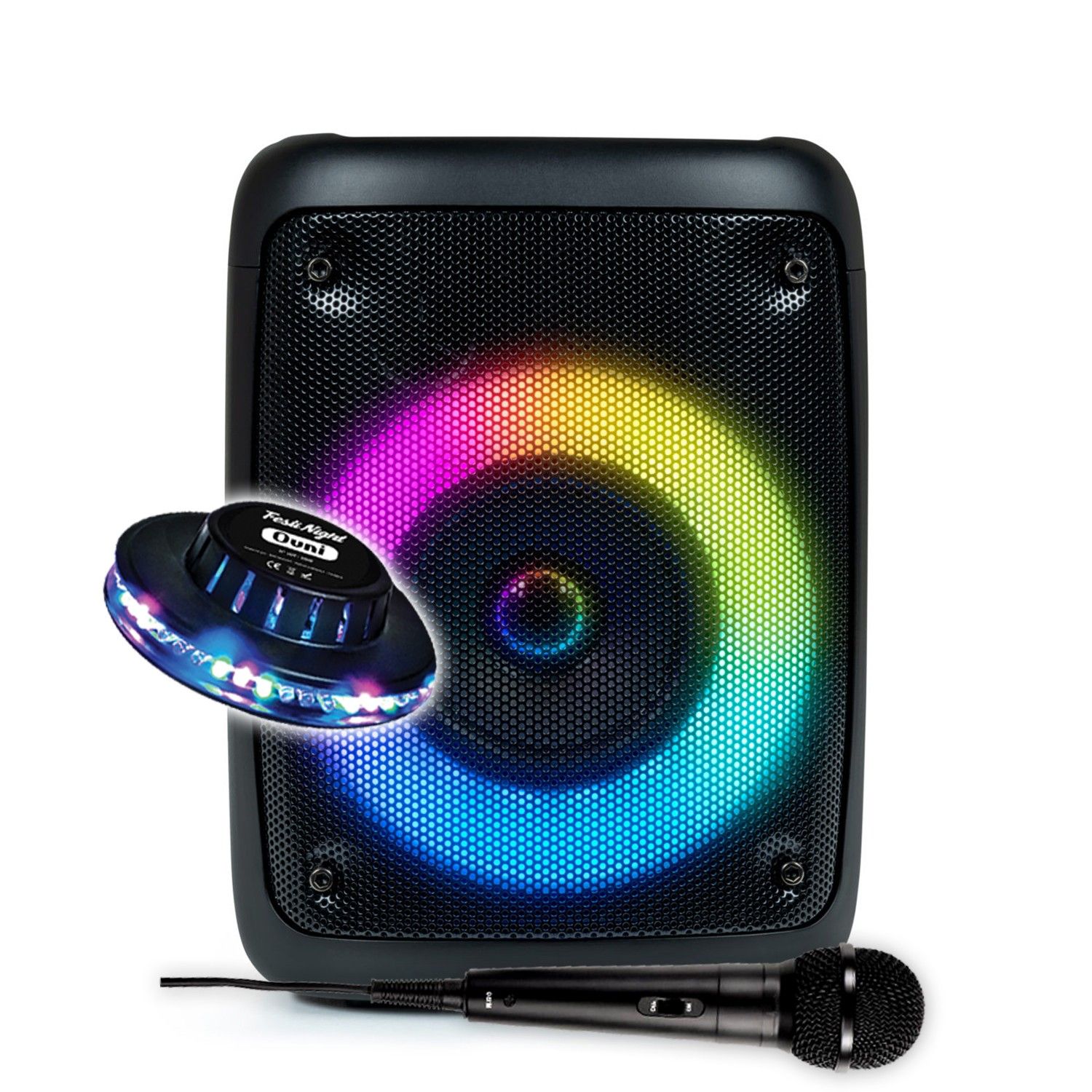 Enceinte sur Batterie Enfant 30W PARTYBTHPS2 - Bluetooth / USB SD, Effet Lumineux + Jeu OVNI à LED, Micro Karaoké - Bass Boost
