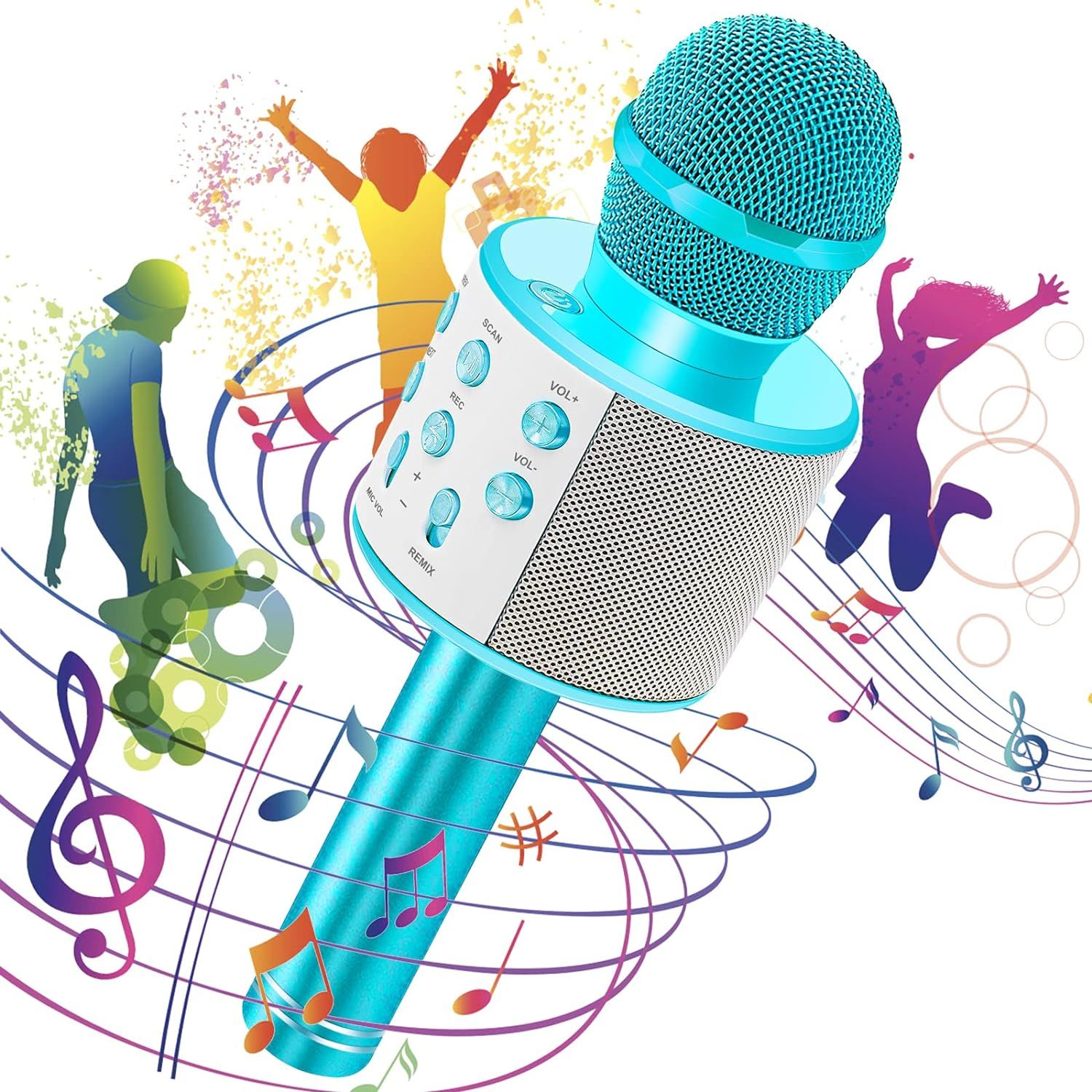 Microphone sans Fil Karaoké, Micro Karaoke Enfant avec Lumières LED de Danse, Microphone Bluetooth pour Enfants Fille Garcon pour Fête Chanter Idée Cadeau de Noël Anniversaire Bleu