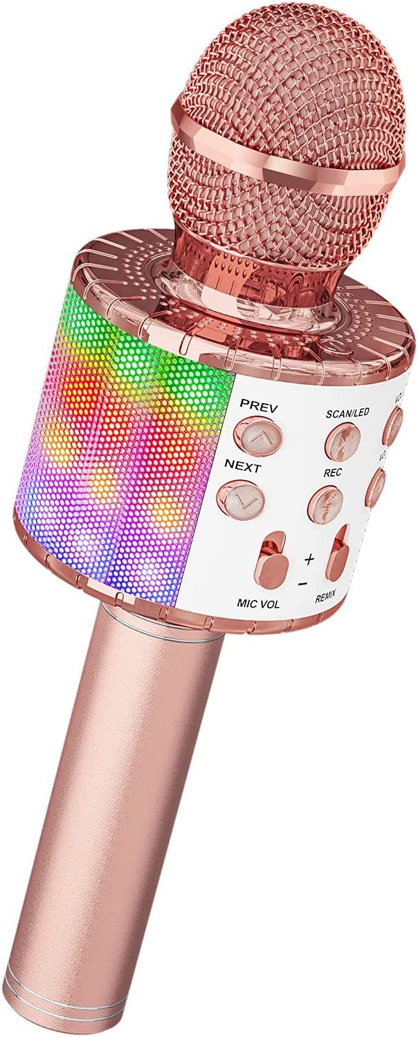 Microphone sans Fil Karaoké? Or Rose?, Micro Karaoke Enfant avec Lumières LED de Danse, Microphone Bluetooth pour Enfants Fille Garcon pour F-cksStore