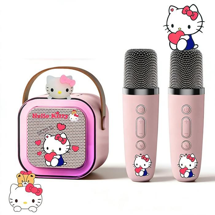 Micro Karaoke Enfant avec 2 Micro sans Fil Motif de Animé- Karaoké avec Lumière RGB et Effets de Changement Rose