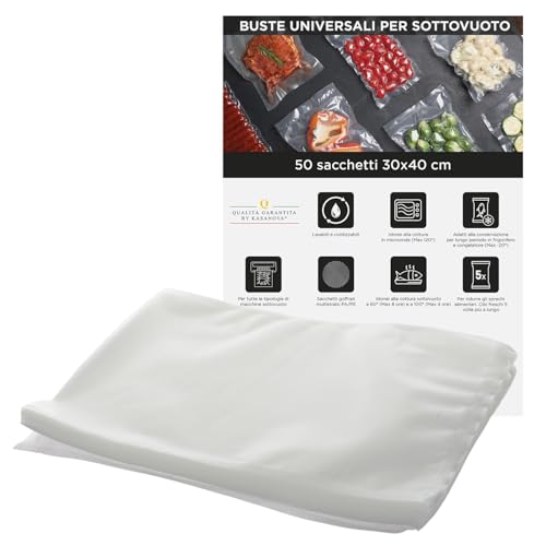Lot de 50 Sacs de Mise Sous Vide Universels – Réutilisables, pour Cuisson et Conservation des Aliments, Congélateur et Micro-ondes (30 x 40 cm)