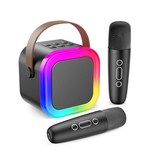 Micro Karaoke Enfant avec 2 Micro sans Fil, Micro Bluetooth Karaoke Sono Enfant avec Lumineux LED Disco, 4 Modes Vocaux, Micros Karaoké sans Fil, Jouet Cadeau Garçons et Fille 3-12 Ans (Noir)