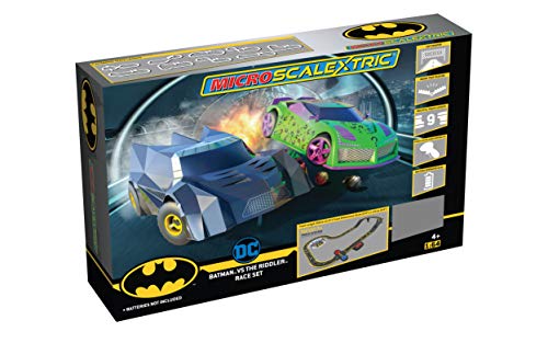ScalextricMicroBatmanvsTheRiddler–batteriebetriebeneRennsets,Slot-Car-RennstreckenfürKinderab4Jahren,inklusive2xAutos,1xStrecken-Set,1xBatterie-Powerbase,2xControllerund + Duracell Optimum Batterien A