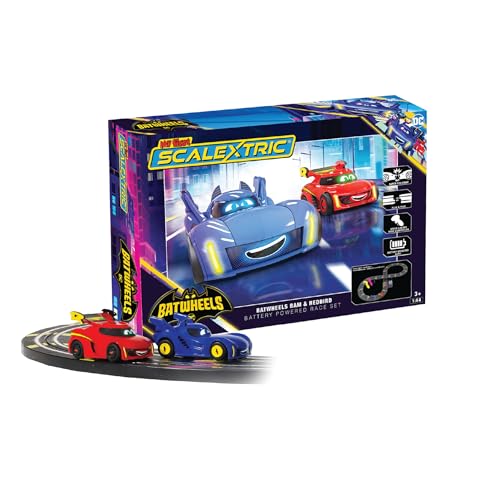 Scalextric Micro Mes Premiers Circuits Scalextric pour Enfants à partir de 3 Ans - G1185M - Mini-Voiture de Course Batman vs Robin Batwheels, Circuit de Course pour garçons