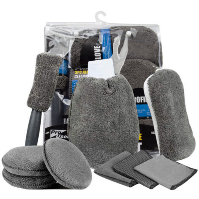 Outils Professionnels Nettoyage de Voiture,Wash Kits Microfibre,Microfibre Lavage Voiture Nettoyer Kit,Chiffons de Nettoyage Gants de Lavage (Gris)