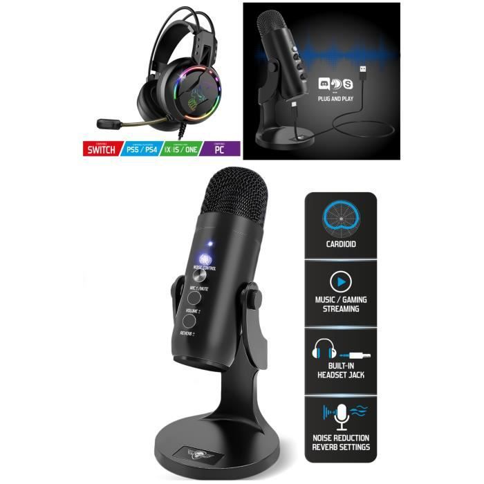 Microphone et Casque Gamer - SPIRIT OF GAMER - EKO700 - Cardioïde - Réduction de bruit - Reverb