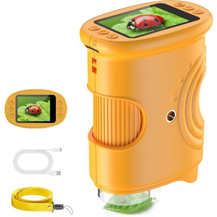 Microscope Enfant, Microscopes Portable Enfant, avec écran IPS 2,0", Microscope numérique, écran 200X, Port USB vers PC, Jaune de Poche