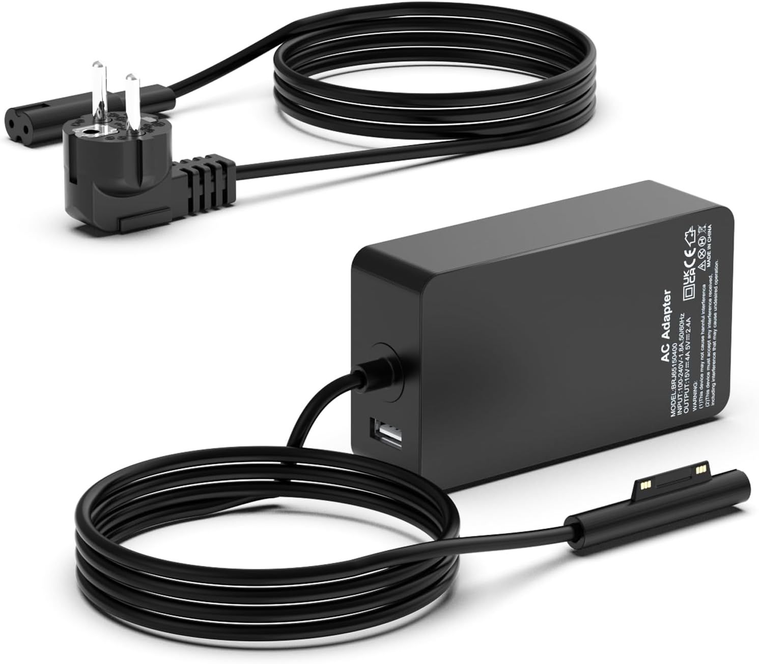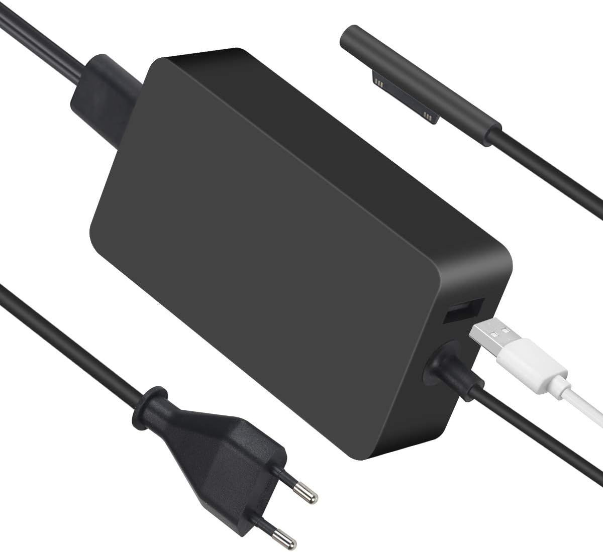 Chargeur 65W Compatible avec Microsoft Surface Pro 10 9 8 7 6 5 4 3, Surface Go 3 2 1, Surface Book, Surface Laptop, Surface Notebook, avec Un USB Port