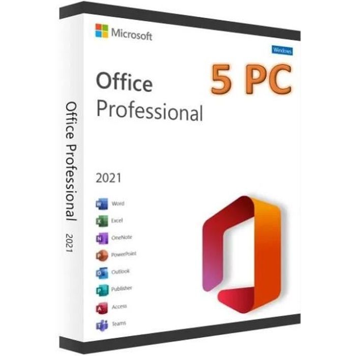 Logiciel Bureautique - Microsoft - Office 2021 Professionnel Plus - 5 Licences - Téléchargement - PC