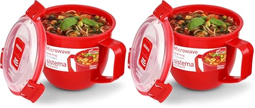 Sistema Microwave Mug à soupe de taille moyenne | Récipient alimentaire micro-ondes | 656 ml | Sans BPA | Rouge (Lot de 2)