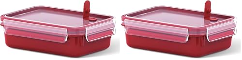 EMSA Microwave Can Clip & Micro 517772 | Valve à micro-ondes | 0,8 L | Boîte à lunch | Mesure intégrée | Fabriqué en Allemagne | Rouge/transparent (Lot de 2)