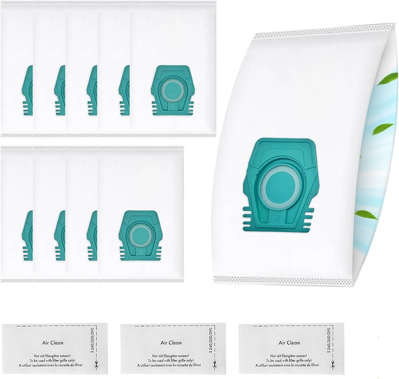 Lot de 10 Premium Sacs d'aspirateur Convient pour Miele Filtration Guard - S528, S290 BIS S399 | avec Filtre | 10 pièces | Microfibre