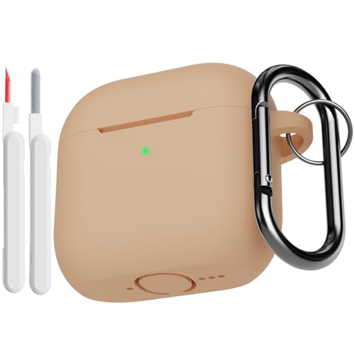 KOKOKA Coque Étui Compatible avec AirPods 4ᵉ Génération avec Kit de Nettoyage, Housse en Silicone Etui de Protection pour AirPods 4 2024 avec Mousqueton, Témoin LED Visible, Milk Tea