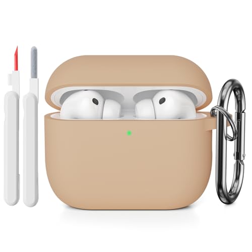 AOTUAO Coque Compatible avec AirPods Pro 3ᵉ Génération avec Kit de Nettoyage, Housse Étui Protection Complète en Silicone Case Cover pour Airpods Pro 3 avec Mousqueton, Milk Tea