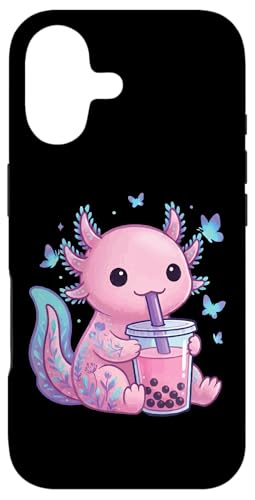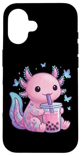 Axolotl Drinking Boba Milk Tea Thé Aux Bulles Coque pour iPhone 16 Plus
