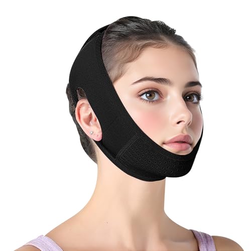 Brrnoo Sangle Amincissante pour Le Visage réglable, Réducteur à Double Menton Respirant Visage en V Resserrant la Ceinture de Levage Élastique pour Le Visage Mise en Forme Bandage Minceur