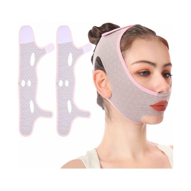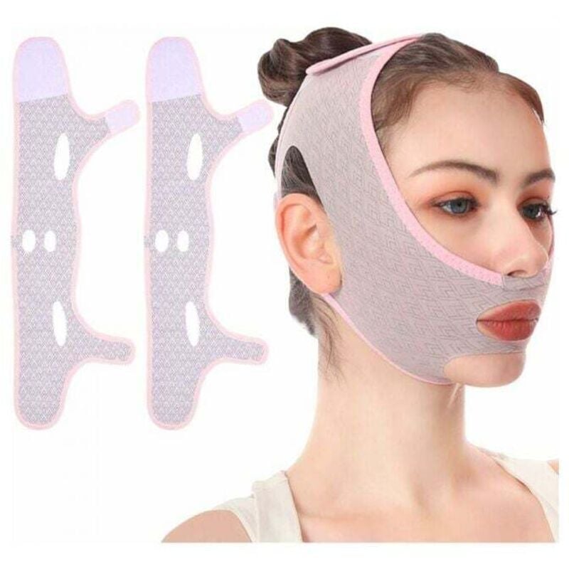 Zueyen 2 pièces Sangle amincissante pour le visage, Masque minceur en forme de V,Bandage de levage pour le visage sans douleur pour éliminer l'affaissement de la peau Lifting Raffermissant anti-rides