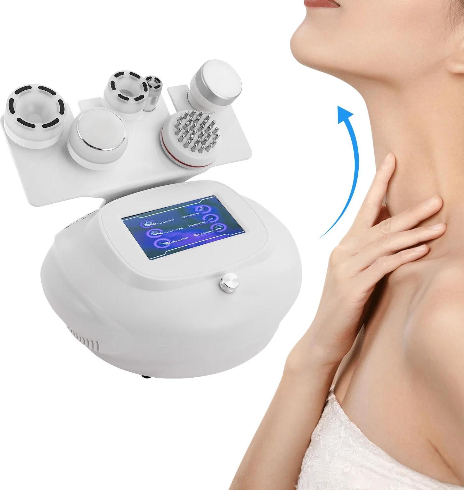 appareil minceur 80K, 6-en-1 RF pour visage & corps, écran LED, RF 3-photons, pression négative, blanc