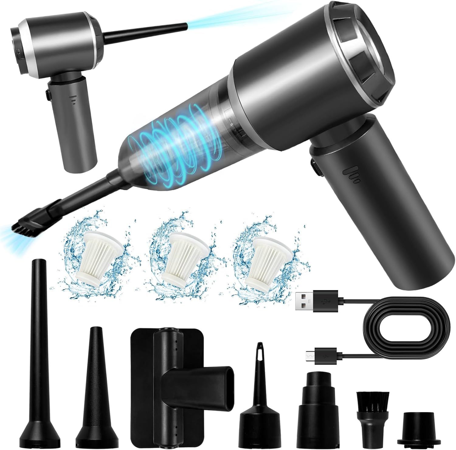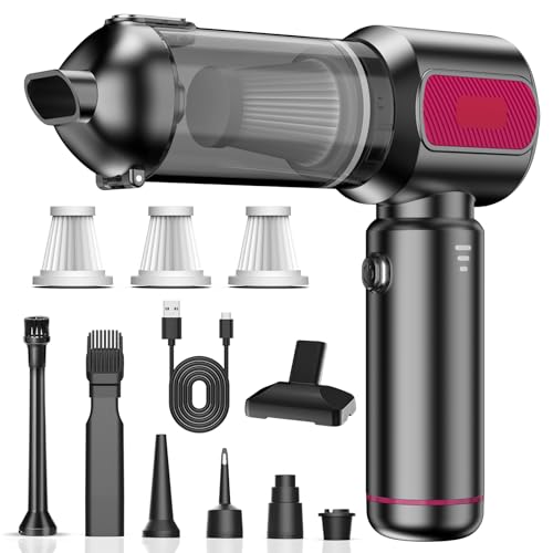 Rawrr Ventilateur à poussière électrique 2 en 1, 51000 TR/Min, 3 Vitesses 68 W, Rechargeable par USB, Mini aspirateur pour Voiture, Maison, Cuisine, Poils d'animaux, Bureau