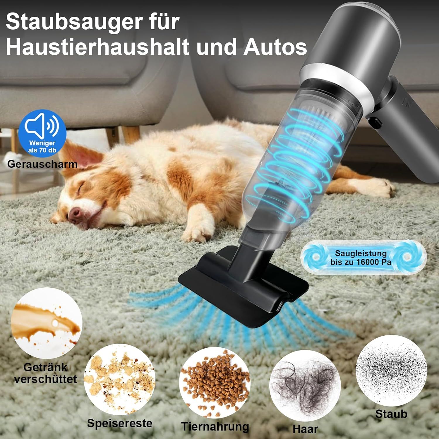 Aspirateur À Main 16000 Pa Aspirateur Voiture Puissant Sans Fil 4 En 1 Mini Aspirateur Avec Usb 3 Filtres Pour La Voiture L'Extérieur La Maison Le Bureau Et L'Élimination Des Poils D'Animaux